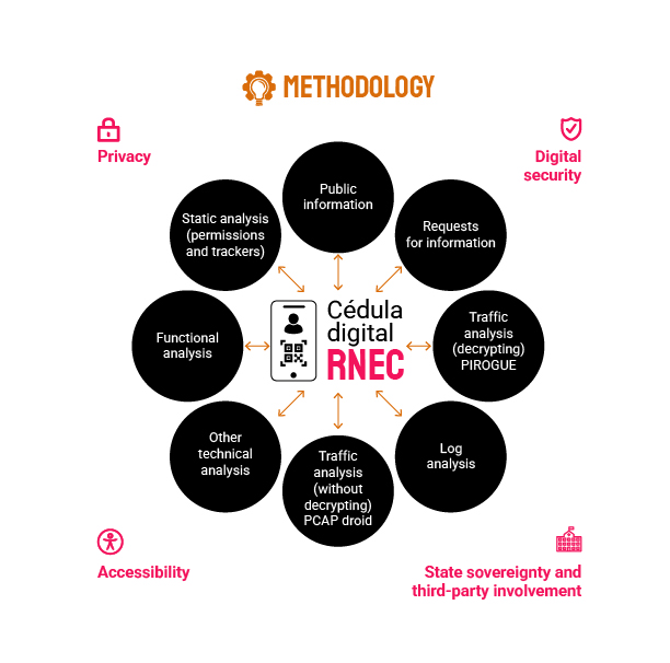 We analyzed the case of the Colombian digital ID app (“Cédula Digital”) during the second half of 2024 and early 2025. Very little is known about its functionality, and public information about how it works is scarce. To find out how it works, what it does with the information it collects, and where it sends our personal datas, we conducted research along these eight lines: